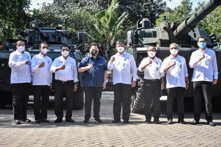 Erick Thohir kagum dan bangga dengan alutsista karya anak bangsa yang sudah dihasilkan Pindad dan mengajak Direksi, Komisaris serta pegawai Pindad untuk berfoto dengan jajaran kendaraan produksi Pindad. Beliau mengapresiasi inovasi industri pertahanan dalam negeri dan mendukung Pindad untuk terus melakukan peningkatan kemampuan dan inovasi kedepannya.