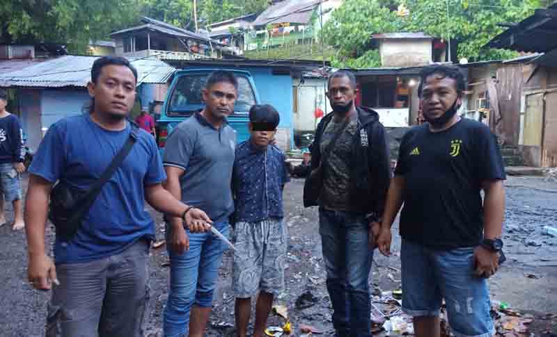 Manado – Tak butuh waktu lama, Tim Paniki Rimbas 3 bersama Tim Macan (Mapan) Polresta Manado, berhasil meringkus pelaku penganiayaan dengan menggunakan senjata tajam (Sajam), terhadap korban bernama Fani Tinggogoy (38) warga Kelurahan Paal Dua Lingkungan II Kecamatan Paal Dua. Pelaku yakni lelaki berinisial JN alias Jerry (18) warga Kelurahan Paal Dua Lingkungan X Kecamatan Paal Dua. Pengangguran ini diringkus saat berada di Kompleks Terminal Kecamatan Paal Dua, Senin (17/5) sekitar 05.46 Wita.