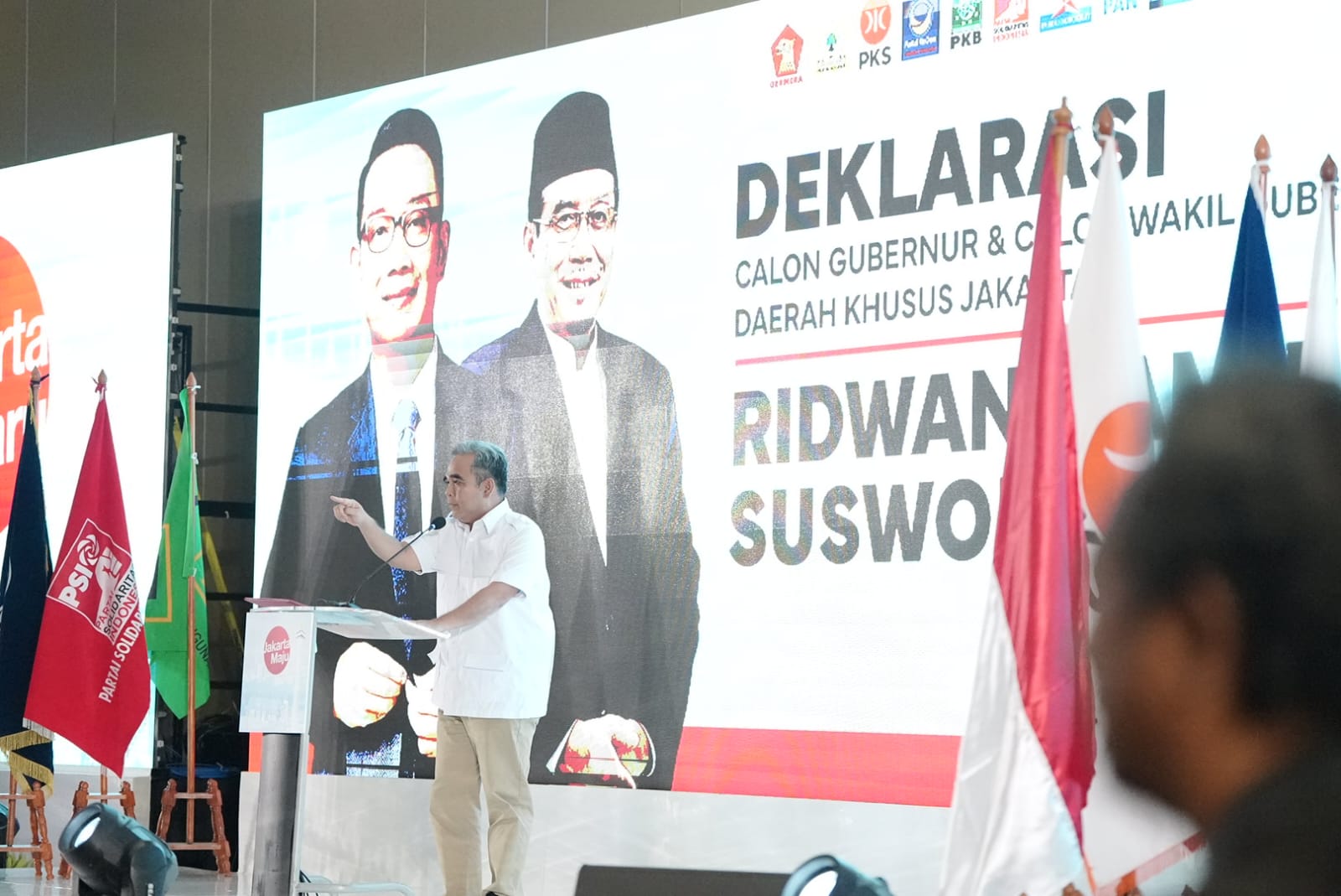 “Setelah melalui diskusi panjang dengan 12 partai politik yang tergabung dalam koalisi, akhirnya kami mendeklarasikan Ridwan Kamil dan Suswono sebagai pasangan calon Gubernur dan Wakil Gubernur Jakarta. Mereka akan didaftarkan pada tanggal 27-29 Agustus 2024 mendatang,” kata Muzani.