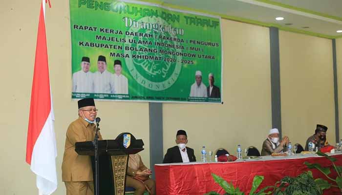 Rapat kerja daerah MUI ini merupakan momentum penting untuk mengoptimalkan peran ulama dalam pembangunan daerah untuk menjawab segala permasalahan, dimana saat ini umat islam l, tak terkecuali di kabupaten bolmut menghadapu berbagai pengaruh negatif yang menyebabkan terkikisnya akidah dan akhlak umat islam, mulai dari permasalahan narkoba, pergaulan bebas, kenalalan remaja dan minuman keras. Kemudian munculnya aliran agam yang mengarah pada aliran sesat dan faham radikal serta kemiskinan yang berpotensi menimbulkan kerawanan akidah dan akhlak.